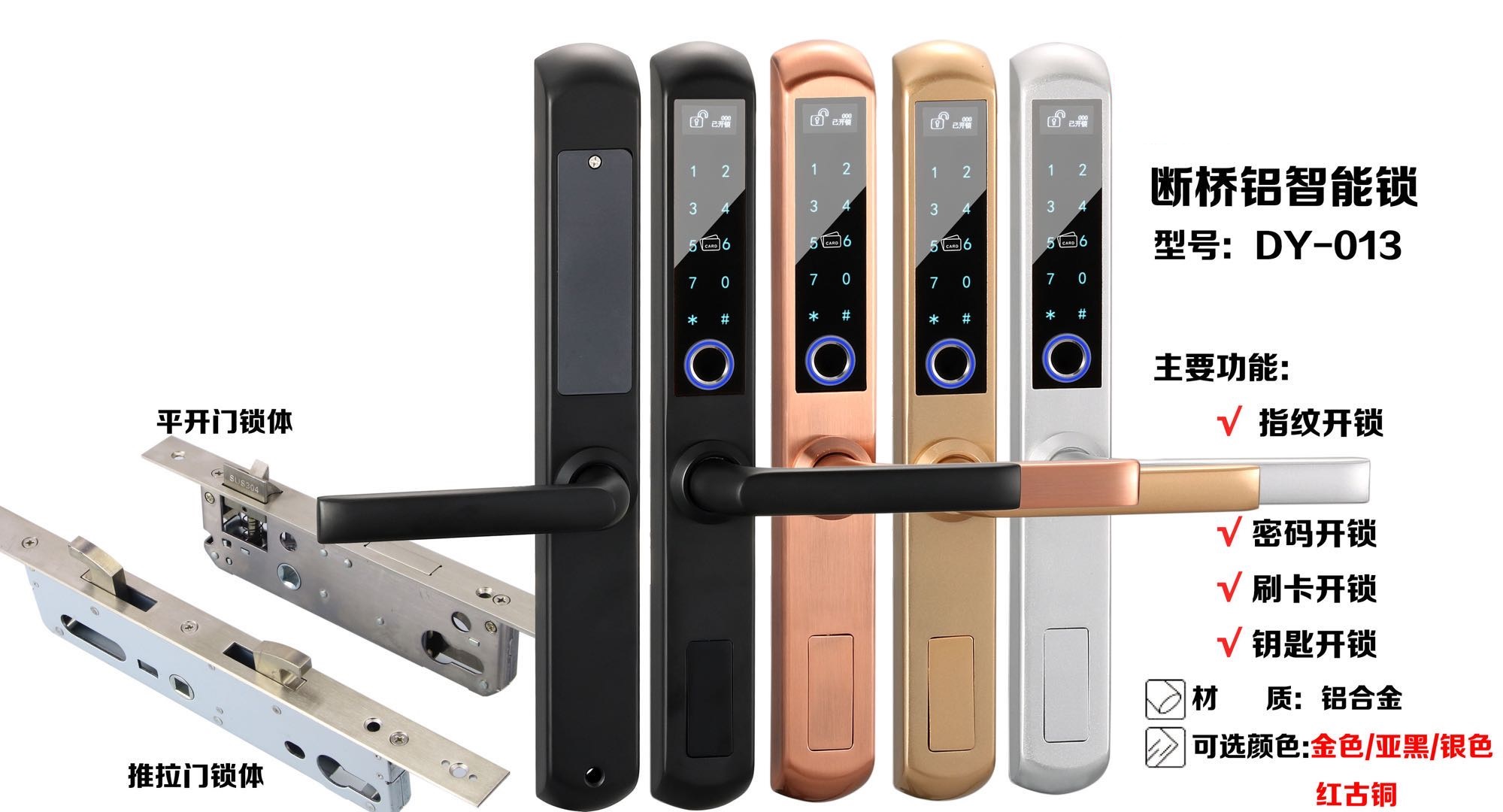 功能:指紋開鎖,密碼開鎖,卡片開鎖,機(jī)械鑰匙